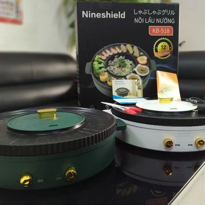 - Nồi lẩu nướng đa năng 2 trong 1 Nineshield KB-518 có thiết kế 2 trong 1 tiện lợi, bạn có thể vừa nấu lẩu vừa nướng cùng một lúc. Đặc biệt khay lẩu có thể chia ngăn (loại uyên ương) giúp bạn có thể ăn song song 2 loại nước lẩu cùng một lúc.