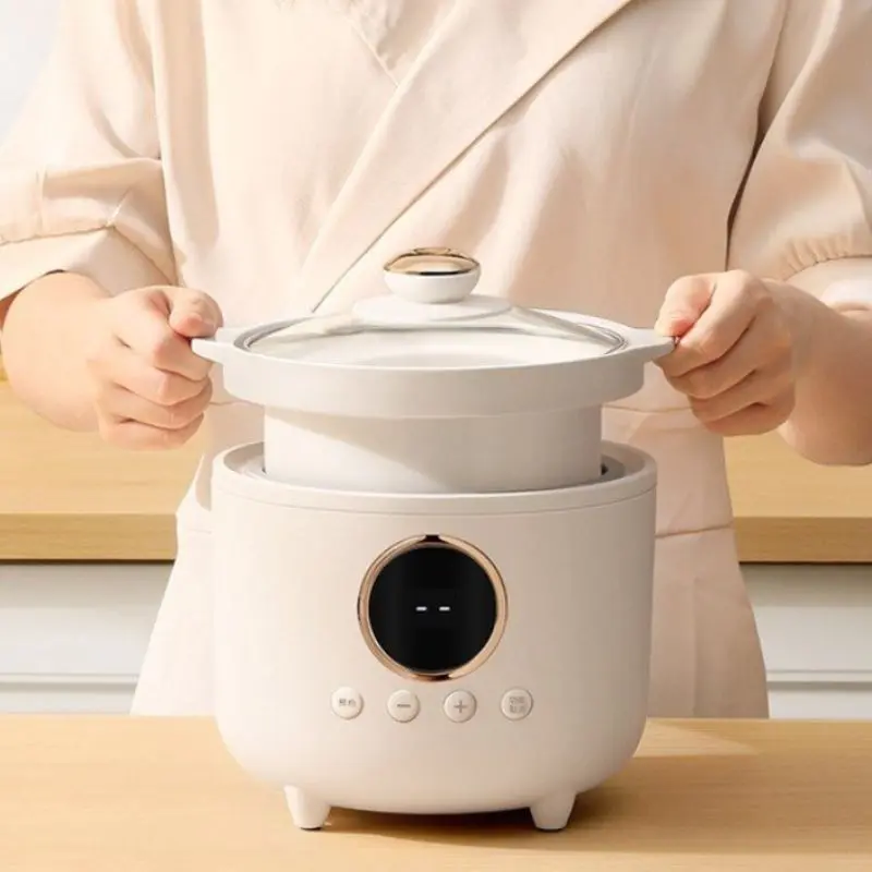 - Vỏ ngoài làm bằng nhựa ABS cao cấp, ruột nồi được làm bằng sứ tráng men (không nhiễm chì, không chứa chất độc hại)