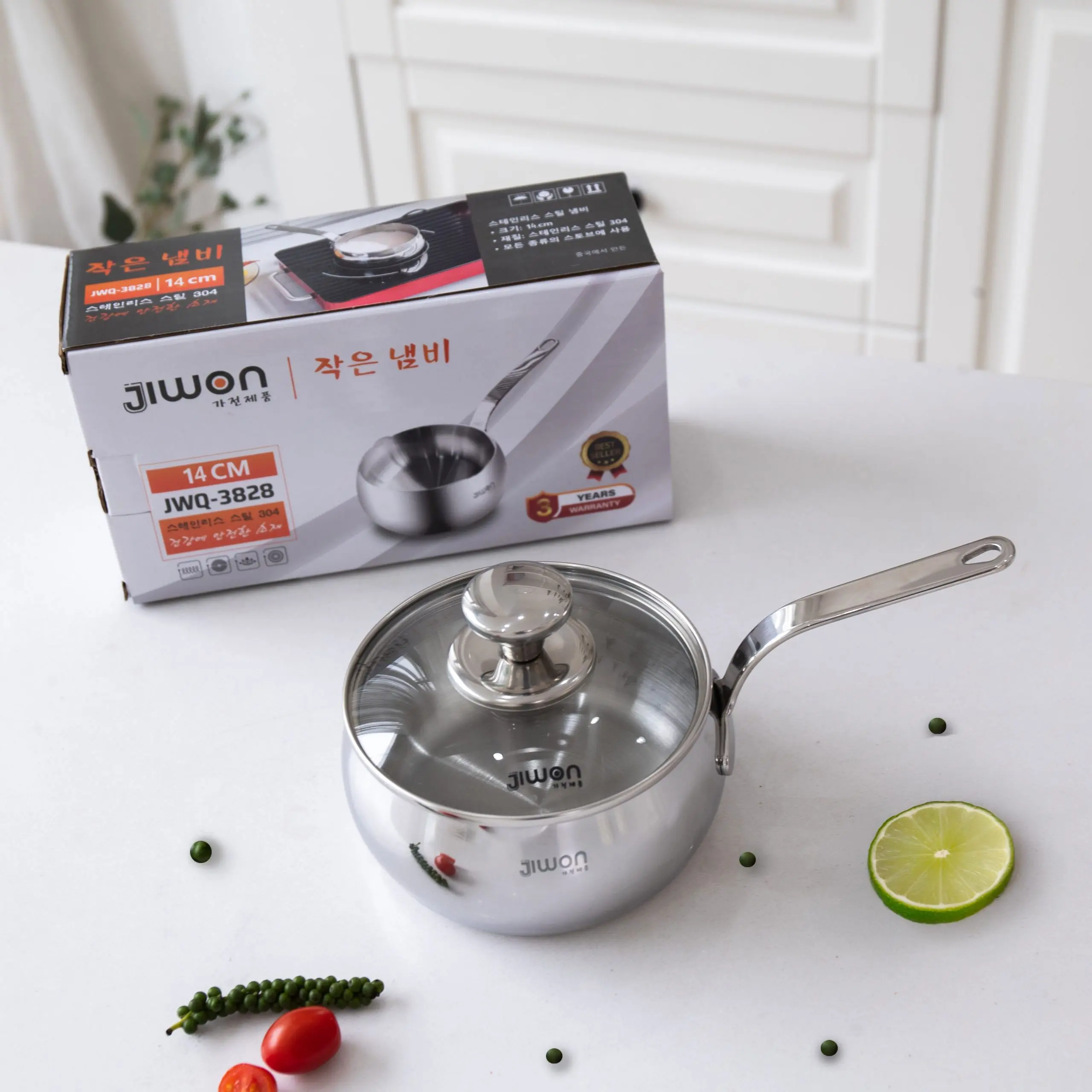Quánh inox Lumi Jiwon JWQ-3828 size 14cm (Kèm vung kính)